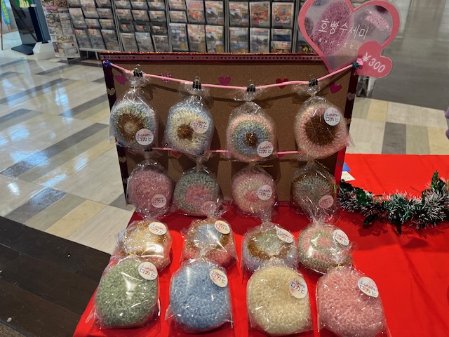 メンバーさんと、職員で韓国で人気の食器スポンジを作製し、販売しました♪♪